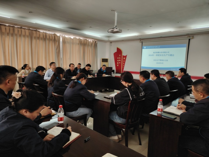 3月29日下午,重慶智慧水務有限公司召開2024年第一季度安全生產專題會議,分解下達公司年度安全目標任務,簽訂安全、消防目標責任書,全面落實安全生產責任。公司安全生產領導小組全體成員、部門負責人、各部門安全員出席會議。